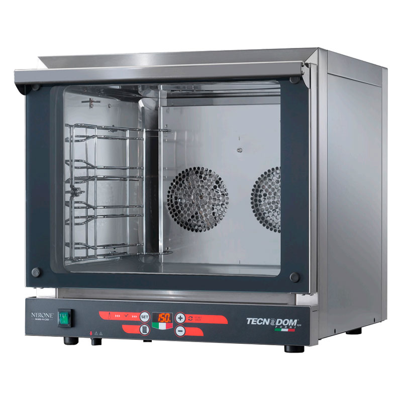 Ce four à convection numérique de Tecnodom, modèle NORONE DIGITALE 595 4, offre une capacité de plateau de 4 plateaux de dimensions 435x350 mm ou 435x320 mm. Il est équipé d'une interface numérique pour une utilisation intuitive et précise. Avec une puissance électrique totale de 3,15 kW, ce four est adapté pour une variété d'applications culinaires dans les cuisines professionnelles. La distance entre les plateaux de 84 mm permet une circulation d'air optimale pour une cuisson uniforme des aliments. Sa conception compacte le rend idéal pour les espaces restreints, tout en offrant des performances fiables et une construction robuste pour une utilisation intensive.