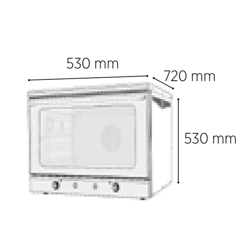 Avec ses dimensions optimisées de 530x720x530 mm et une capacité de 4-GN 2/3, le four VENARRO s'intègre facilement dans tout laboratoire ou espace de travail professionnel. Sa taille compacte n'altère en rien ses performances, offrant une cuisson parfaite pour toutes vos préparations pâtissières et boulangères.