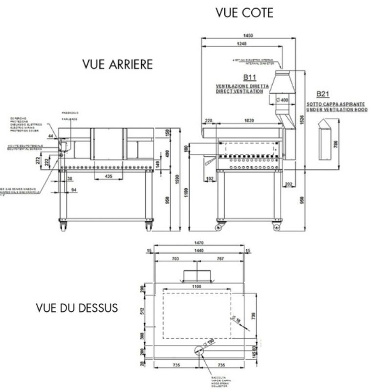 Avec des dimensions extérieures de 1470x1230x790 mm et un poids de 220 kg, ce four à pizza professionnel allie robustesse et ergonomie. Son intérieur spacieux (1100x730x180 mm) permet une répartition efficace de la chaleur pour une cuisson rapide et uniforme. Équipé d'une étuve à roulettes, il offre une flexibilité maximale pour l'organisation de votre espace de travail. Sa tension de 400V garantit une compatibilité avec les installations électriques professionnelles.