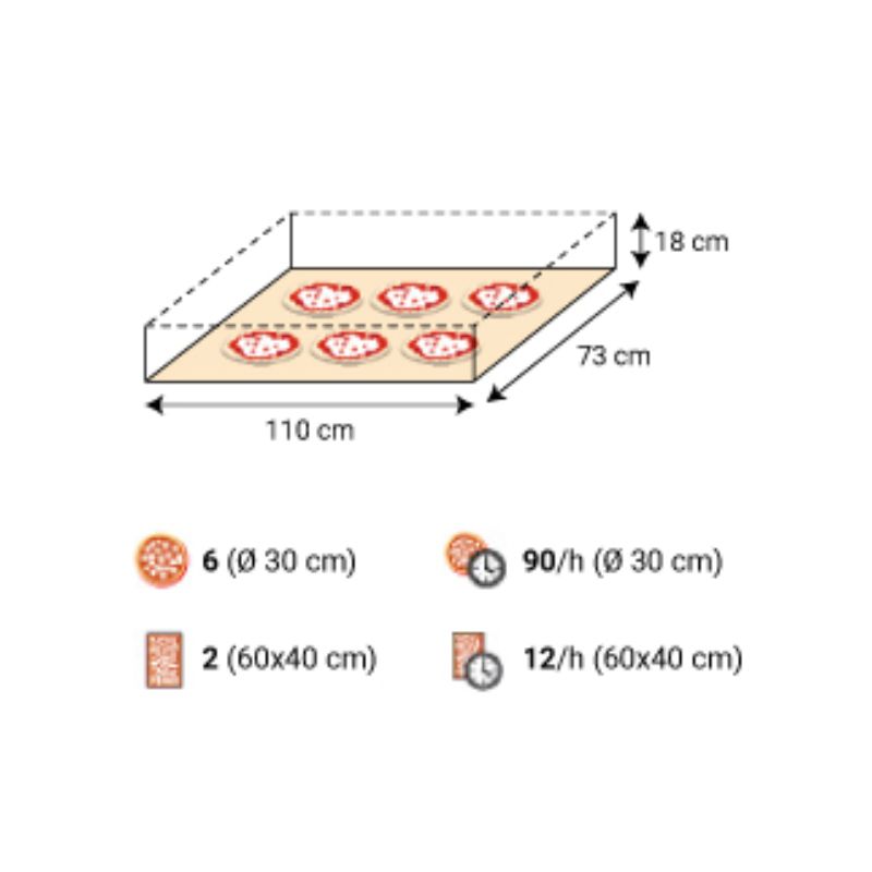 Le four à pizza à gaz MORETTI FORNI P110/A est conçu pour répondre aux exigences des professionnels de la restauration. Avec sa capacité de 6 pizzas de 30 cm et une production allant jusqu'à 90 pizzas par heure, ce four est l'allié idéal pour les pizzerias et restaurants à forte affluence. Son système de chauffe performant atteint rapidement une température maximale de 350°C, garantissant une cuisson homogène et croustillante. Sa puissance de 21,5 kW et sa consommation gaz de 18 500 kcal assurent une efficacité énergétique optimale.