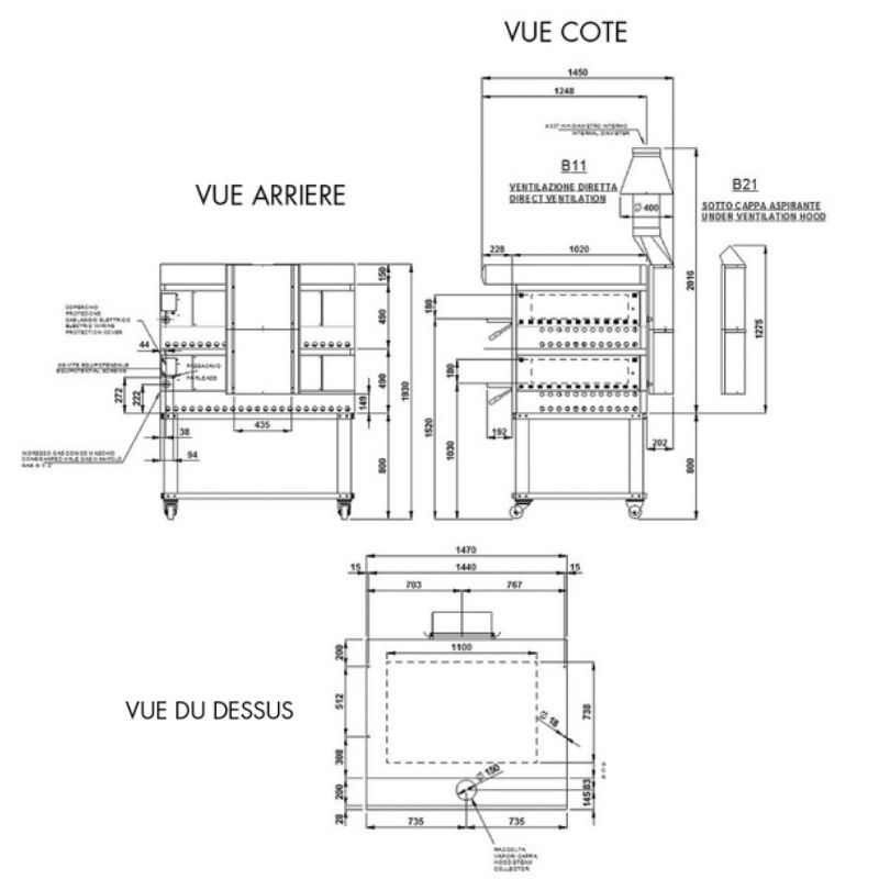 Grâce à ses dimensions généreuses (1470x1230x2020 mm en extérieur et 2x1100x730x180 mm en intérieur), le MORETTI FORNI P110/A-2 optimise l’espace de cuisson tout en garantissant une gestion thermique efficace. Son poids de 300 kg en fait un appareil stable et robuste, conçu pour une utilisation intensive. Offrez à vos clients des pizzas savoureuses, croustillantes et parfaitement cuites grâce à ce four haut de gamme.