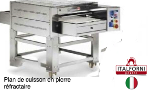 four professionnel équipé d'un tapis roulant qui fait passer la pizza à travers une chambre de cuisson à température contrôlée. Ce système permet une cuisson automatisée, homogène et rapide, idéale pour les