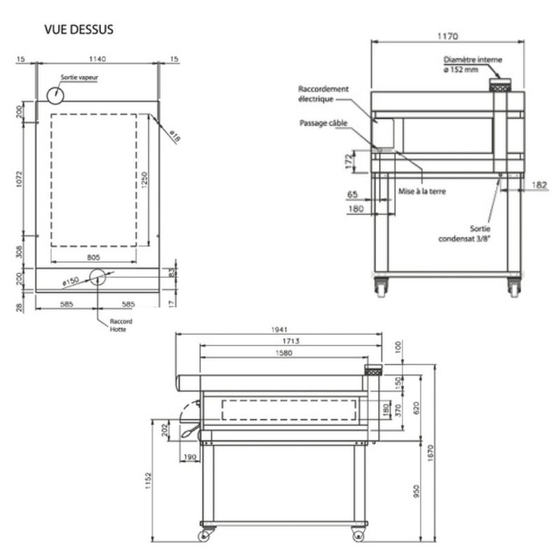- Capacité pizza (Ø 45 cm) : 3 pizzas