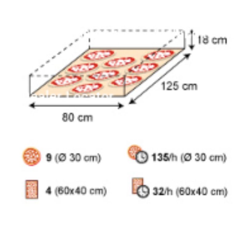 - Capacité pizza (Ø 30 cm) : 9 pizzas