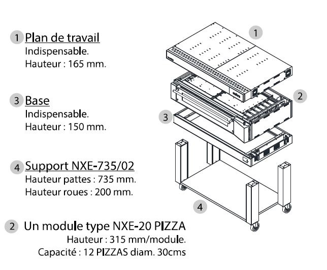-Four électrique polyvalent formé de modules ou chambres indépendantes empilables qui permettent de monter le four et de l'adapter selon les besoins actuels et futurs du client.