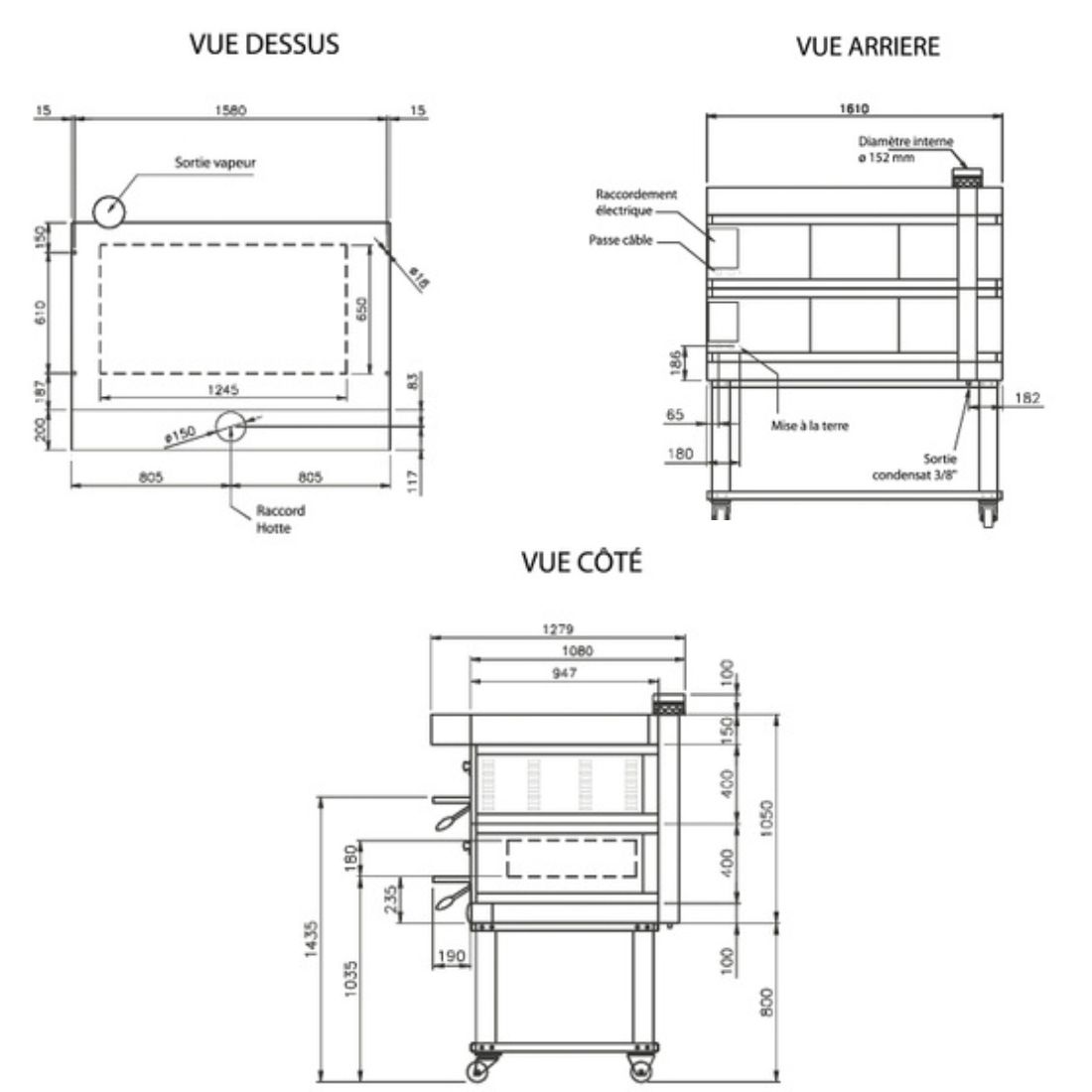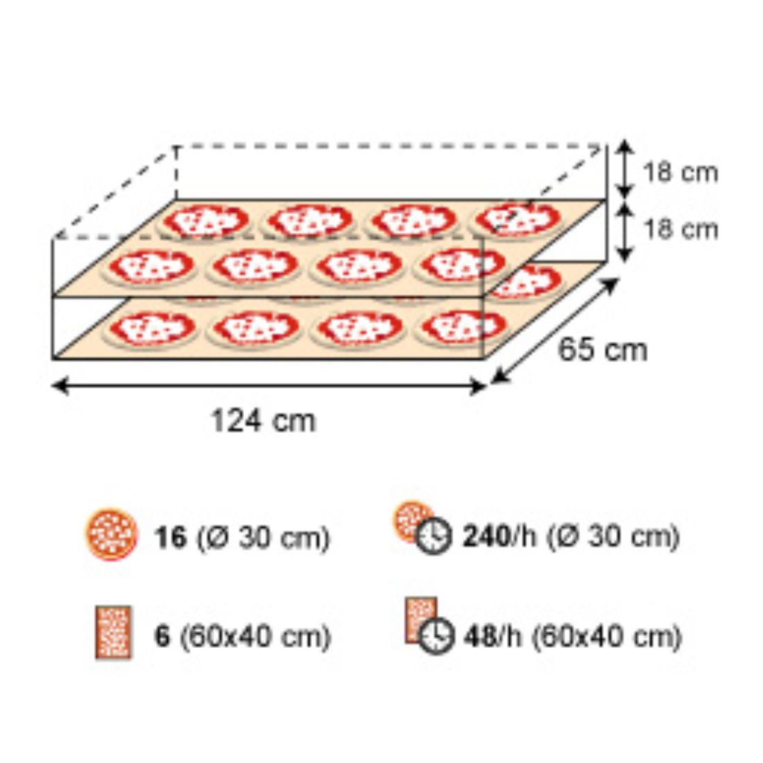 | Capacite | 8 pizzas Ø 30 / 2 pizza Ø 45 / 3 plaques 600x400 |