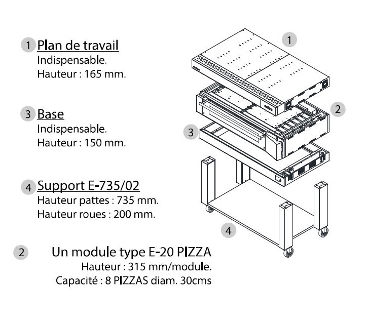 -Four électrique polyvalent formé de modules ou chambres indépendantes empilables qui permettent de monter le four et de l'adapter selon les besoins actuels et futurs du client.