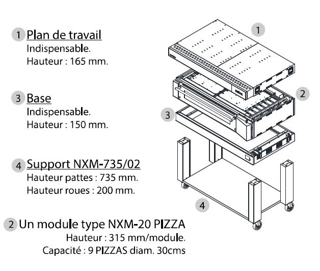 -Four électrique polyvalent formé de modules ou chambres indépendantes empilables qui permettent de monter le four et de l'adapter selon les besoins actuels et futurs du client.