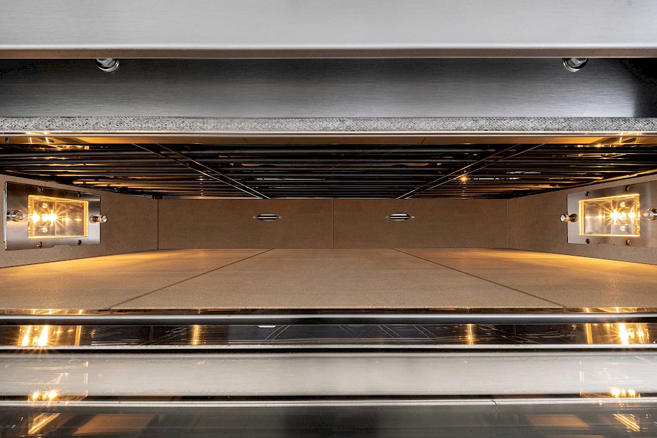 • Il est également possible de diversifier la puissance des résistances dans les trois zones de la voute et dans les trois zones du sol (bouche, centre et fond), ce qui permet de garantir une cuisson uniforme de la pizza et de limiter les interventions de l’opérateur au minimum