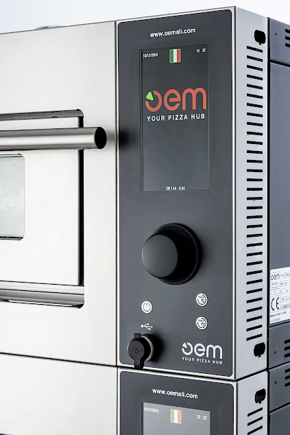 - Pizza ronde, Pizza à la pelle, Pizza à la poêle, Focaccia, Pain + 3 programmes gratuits (chaque programme a 3 niveaux d'intensité de travail), PANNEAU DE DÉFILEMENT ET DE CLIC - Panneau de commande avec écran LCD avec technologie couleur TFT.