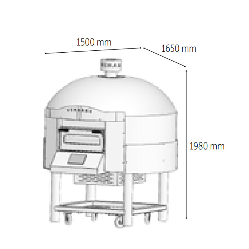 Avec ses dimensions de 1500x1600x1900 mm et une surface de cuisson de 1000 mm, ce four s'intègre parfaitement dans les espaces professionnels. La bouche de 500x215 mm facilite la manipulation rapide des pizzas et autres produits. Fonctionnant sous tension 220V, il est compatible avec la majorité des installations professionnelles.