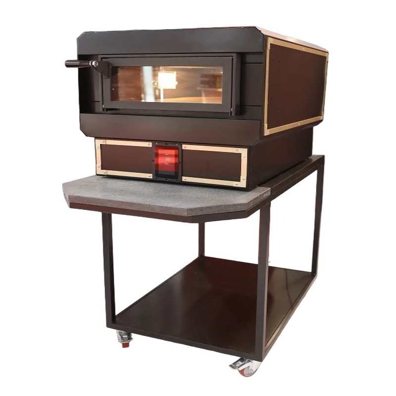La zone de cuisson est équipée de briques réfractaires spéciales appelées 'Briques de Sorrente', conçues pour le chauffage électronique, garantissant des températures élevées et une répartition uniforme de la chaleur.