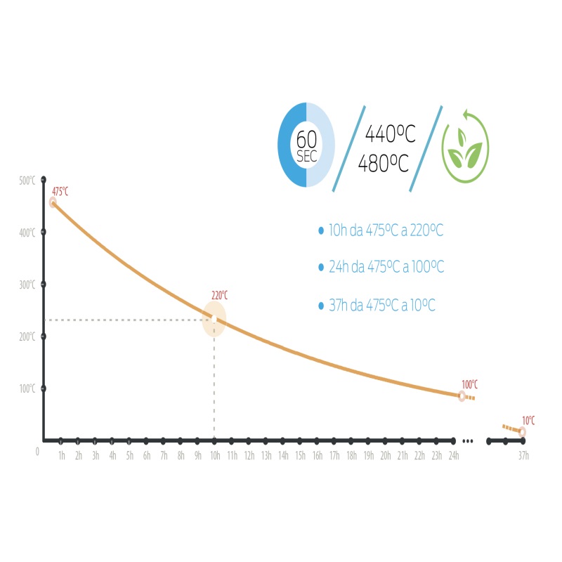 Les fours Izzo Forni offrent une cuisson rapide à des températures allant jusqu'à 450°C. La structure solide et l'isolation thermique parfaite maintiennent ces températures, même en cas d'utilisation intense. De plus, la diminution progressive de la température après l'arrêt du système permet d'importantes économies d'énergie, assurant une efficacité énergétique exceptionnelle.