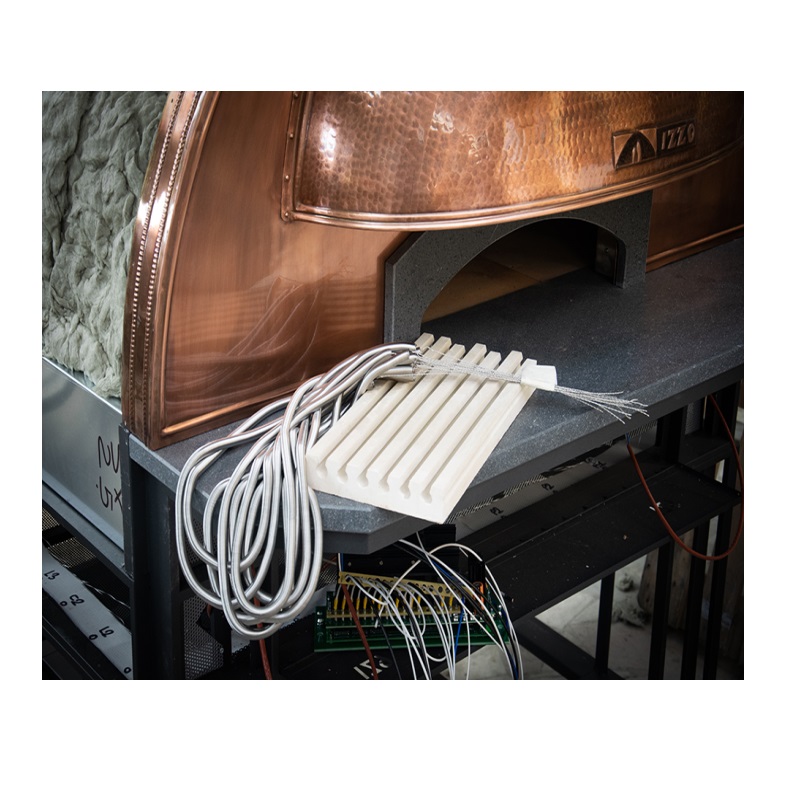 Les briques broyées de 4 cm d'épaisseur, composant le sol en 'Biscotto di Sorrento', emprisonnent la chaleur et maintiennent une température constante. Les 4 cm supplémentaires de briques réfractaires en haut de la chambre permettent d'économiser considérablement l'électricité tout en maintenant la température optimale.
