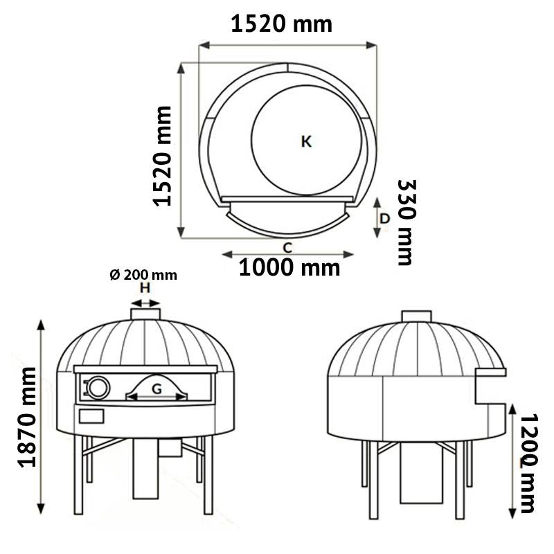 - Dimensions (LxPxH) : 1520 x 1520 x 1950 mm