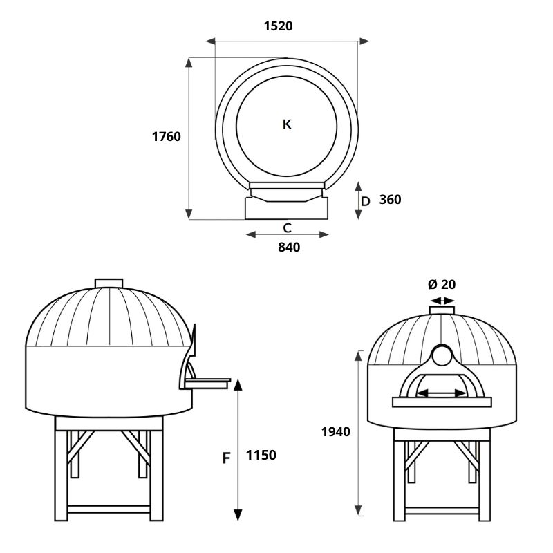 Le four à pizza Napolitaine Marana Forni se distingue par sa capacité à offrir une cuisson optimale, tant au bois qu’au gaz. Il peut cuire jusqu’à 5 pizzas de 33 cm avec le bois, ou 7 pizzas avec le gaz, pour satisfaire les besoins des plus grandes cuisines. Grâce à ses dimensions généreuses (1520x1760x1940 mm) et son poids de 1105 kg, ce four est conçu pour offrir une performance inégalée tout en étant robuste et durable.