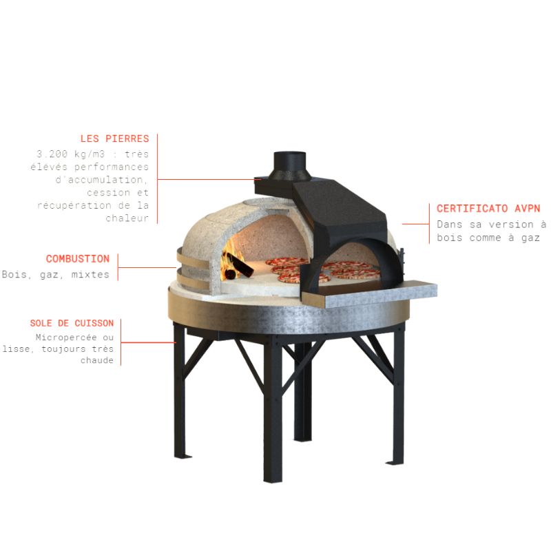 Grâce à sa certification AVPN (Associazione Verace Pizza Napoletana), ce four à pizza garantit une cuisson fidèle aux standards de la véritable pizza napolitaine. La pierre réfractaire à haute densité (3200 kg/m3) accumule et restitue la chaleur de manière optimale, assurant une cuisson rapide et uniforme à chaque utilisation. Ce matériau d’exception, trois fois plus résistant que le porphyre, garantit une longévité impressionnante et une résistance accrue à l’usure.
