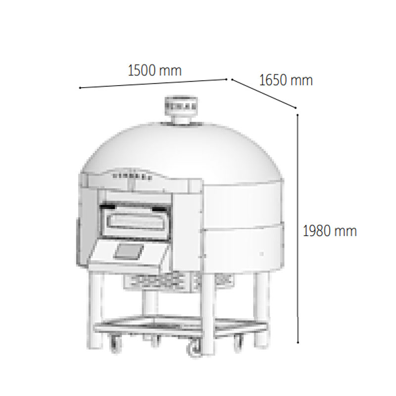 Avec des dimensions de 1500x1600x1900 mm et une surface de cuisson de 1000 mm, le four s'intègre parfaitement dans tout environnement professionnel. Sa bouche de 500x215 mm facilite l'enfournement et le défournement, rendant le processus de cuisson plus fluide et rapide.