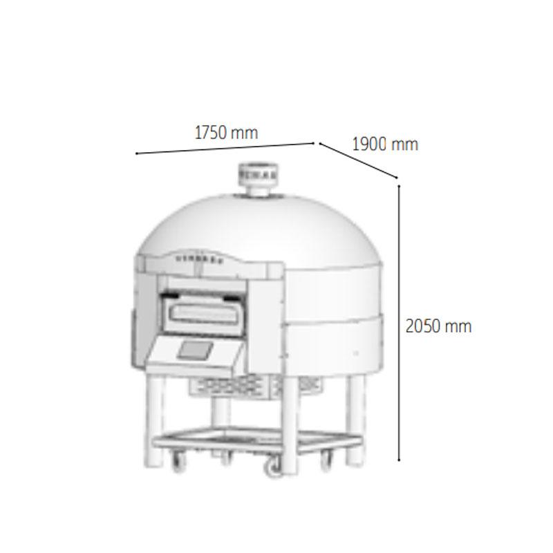 Avec des dimensions de 1750x1900x2050 mm et une surface de cuisson de 1200 mm, ce four s’intègre parfaitement dans les laboratoires de boulangerie, pâtisserie ou pizzeria. Sa bouche de 500x215 mm facilite le chargement et le déchargement rapide des pizzas, garantissant une fluidité dans le travail quotidien.