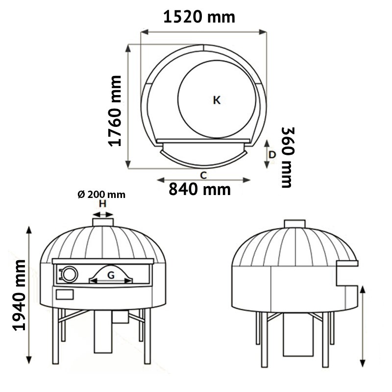 Avec ses dimensions de 1520 x 1760 x 1940 mm et son poids de 1105 kg, le Fisso 120 Bois est conçu pour durer. Sa structure robuste assure une excellente inertie thermique et une longévité adaptée à un usage quotidien intensif dans un environnement professionnel.