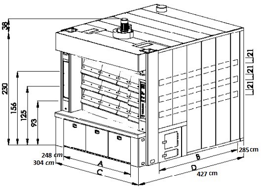 Les portes des chambres de cuisson sont en verre trempé auto-équilibré. Sur demande, il est possible d'ouvrir les portes vers le haut.