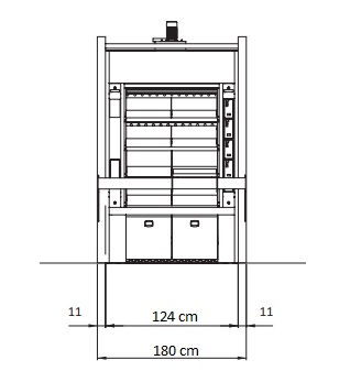 Les portes des chambres de cuisson sont en verre trempé auto-équilibré. Sur demande, il est possible d'ouvrir les portes vers le haut.