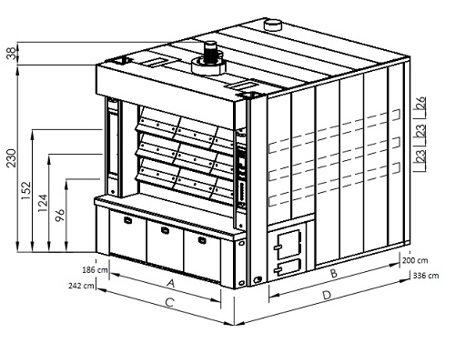 Fours à tubes annulaires en maintenant les principales caractéristiques de HOMOGENEITE et QUALITE de cuisson des fours à vapeur de Logiudice, le modèle KAPPA correspond aux exigences de compacité et flexibilité demandées par les utilisateurs d’aujourd’hui. Four à tubes annulaires avec foyer et canaux maçonnés. Disponible à 3, 4 et 5 étages et portes, avec surfaces de cuisson comprises entre 6m² et 18,5m². L’enveloppe isolante en béton est remplacée par un matériel avec un coefficient d’isolation élevé. Disponible en versions avec brûleur fioul, gaz, combustible solide, biocombustible-pellet. Le chargement et le déchargement peuvent se faire par un élévateur et un tapis d’enfournement.