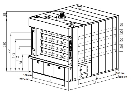 C'est notre four traditionnel par excellence , avec des canaux en brique réfractaire et une enveloppe d'isolation en béton . Grâce à l'uniformité de température produite par la circulation de la vapeur et à la masse thermique élevée, nos fours à vapeur à tubes annulaires se distinguent par leur extraordinaire homogénéité et qualité de cuisson . Idéal pour la cuisson de tous types de casseroles e. Produit avec 3 et 4 chambres de cuisson multi-portes, surfaces de cuisson entre 6m² et 29,5m² . Disponible dans la version avec gaz, diesel, combustible solide, biomasse - brûleur à granulés. Le chargement et le déchargement peuvent être effectués avec une pelle et des cadres de chargement.