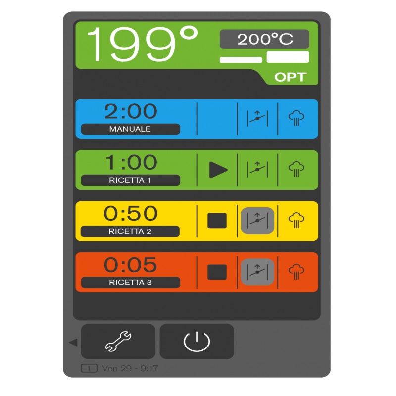 L'interface tactile intuitive du four Ecomondial révolutionne l'expérience de cuisson en offrant un contrôle complet du processus. Son écran tactile couleur réactif permet de surveiller et d'ajuster facilement les paramètres du four, ce qui se traduit par une réduction des coûts opérationnels et une optimisation de la productivité de votre atelier, même à distance.