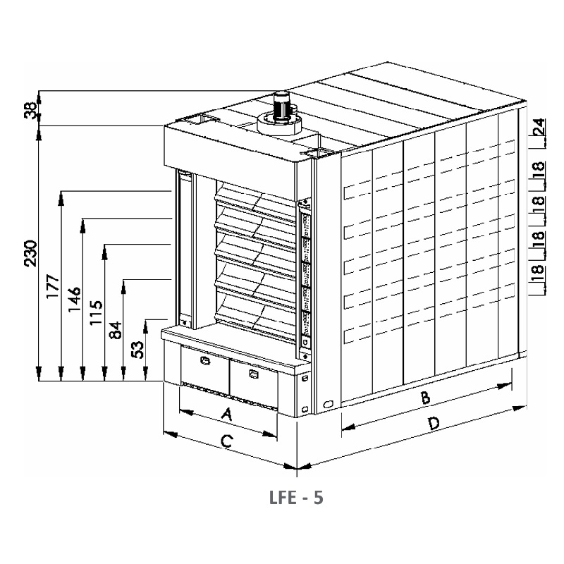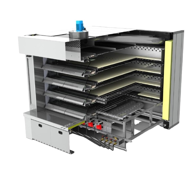- Capacité et Configuration : Disponible en configurations de 3, 4, ou 5 étages et portes, avec des surfaces de cuisson allant de 3 m² à 24 m².