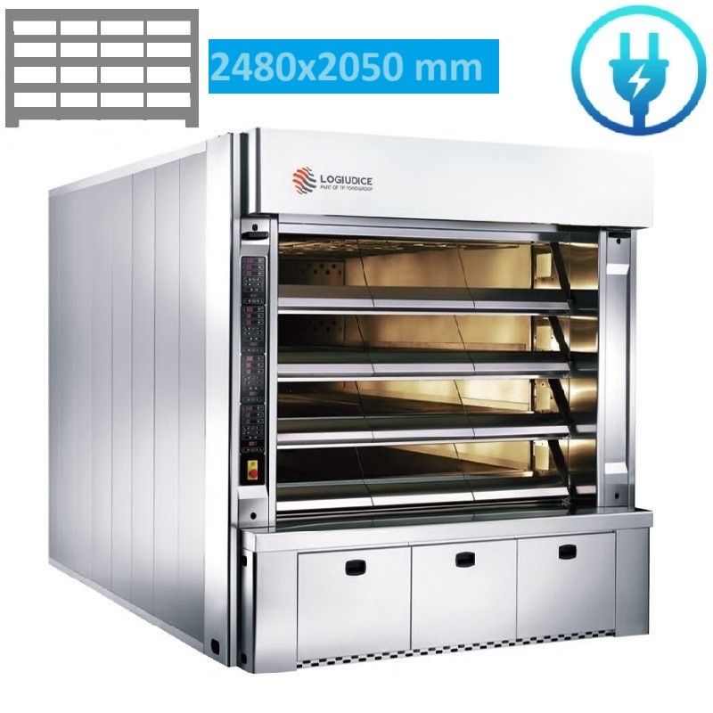 - Capacité et Configuration : Disponible en configurations de 3, 4, ou 5 étages et portes, avec des surfaces de cuisson allant de 3 m² à 24 m².