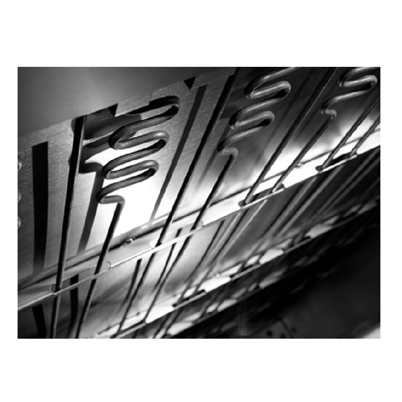 - Résistances blindées en acier AISI 309 : Positionnées pour compenser la dispersion de chaleur, garantissant une puissance homogène dans chaque chambre de cuisson.