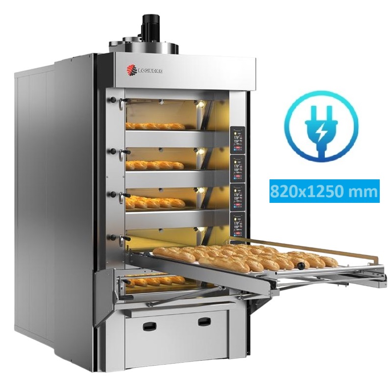 Idéal pour la cuisson de pains et de produits de pâtisserie, le four à sole électrique 5 étages de 82 est conçu pour offrir des performances exceptionnelles dans un format compact. Avec une porte de 820 mm de large, ce four est parfait pour les espaces réduits ou avec des problèmes d'accès.