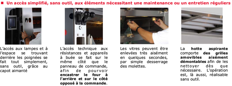 -Le rayonnement du four se réfléchit sur les vitres qui renvoient la chaleur sur les produits situés à l'avant du four, à proximité des bouches.
