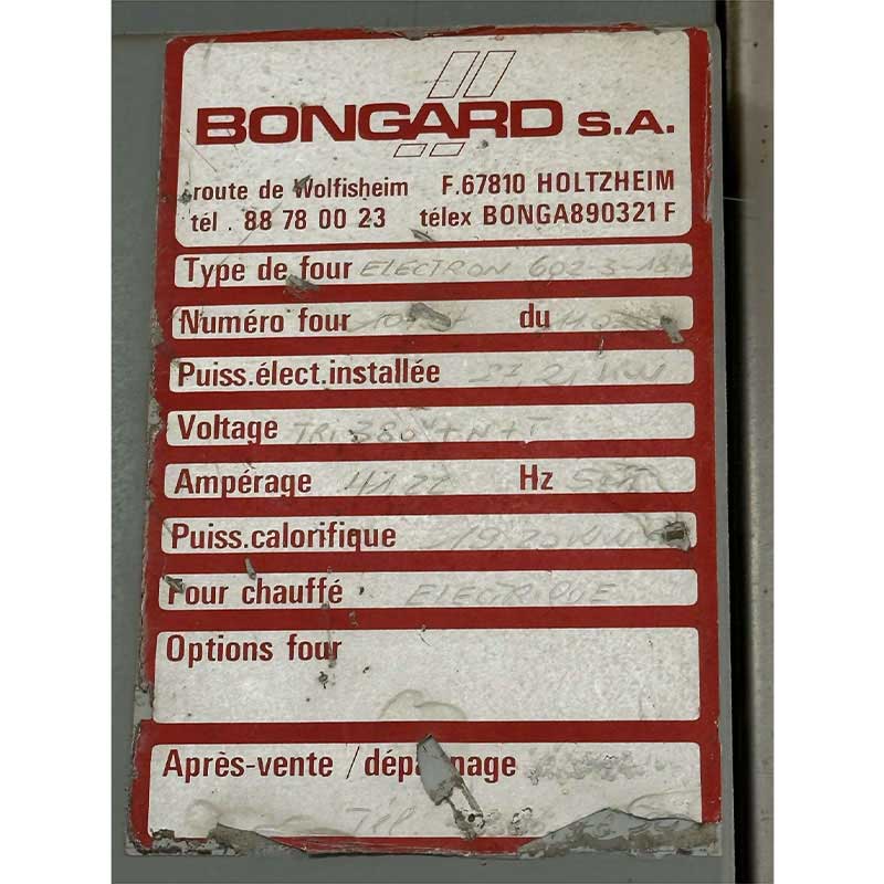 Découvrez notre Four à sole électrique Bongard d'occasion, modèle Electron 602-3-184, idéal pour les professionnels de la boulangerie et de la pâtisserie. Ce four, de la marque renommée BONGARD, offre une performance fiable et des fonctionnalités avancées.