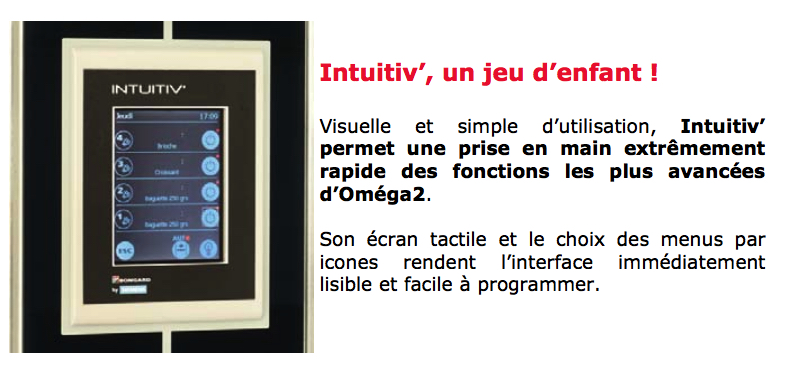 Le four Oméga2 est équipé au choix de la commande Intuitiv’ (en standard) permettant: