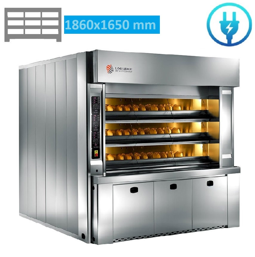 - Capacité et Configuration : Disponible en configurations de 3, 4, ou 5 étages et portes, avec des surfaces de cuisson allant de 3 m² à 24 m².