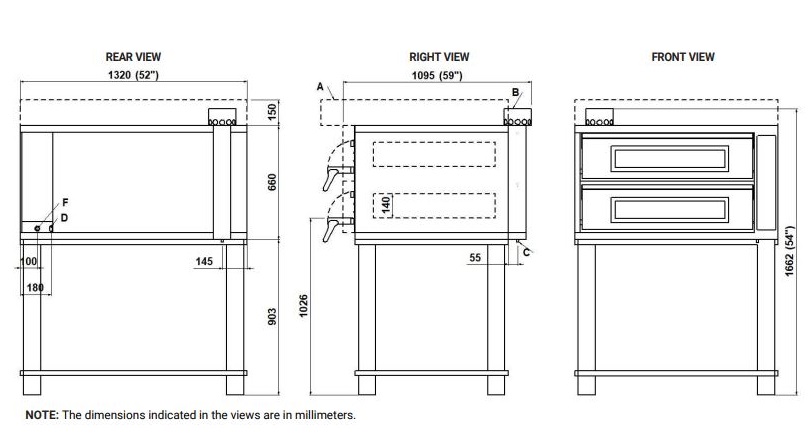- Cuisson simultanée de 12 pizzas Ø 30 cm ou 4 pizzas Ø 45 cm.
