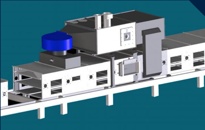 -Chaque zone du four à convection indirecte est équipée d'un échangeur de chaleur et d'une série de conduits pour cuire le produit en soufflant de l'air chaud sur celui-ci. Cette méthode est très efficace, offrant une cuisson rapide et de très bonnes caractéristiques d'élimination de l'humidité. La plupart des produits peuvent être cuits en utilisant cette méthode (biscuits, cookies, gâteaux en couches), et ce four est extrêmement efficace dans les dernières zones d'un four hybride.