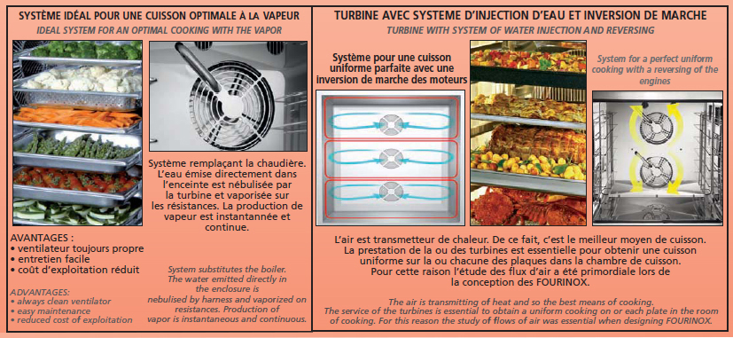 FOURINOX 'GASTRO CHEF” Line : pour une gamme infinie de recettes en version manuel. Version électronique permet une fonction mémorisable avec une large palette de cuisson automatisée, simplement sélectionner le type de cuisson souhaité pour réaliser de manière automatique une gamme infinie de mets.