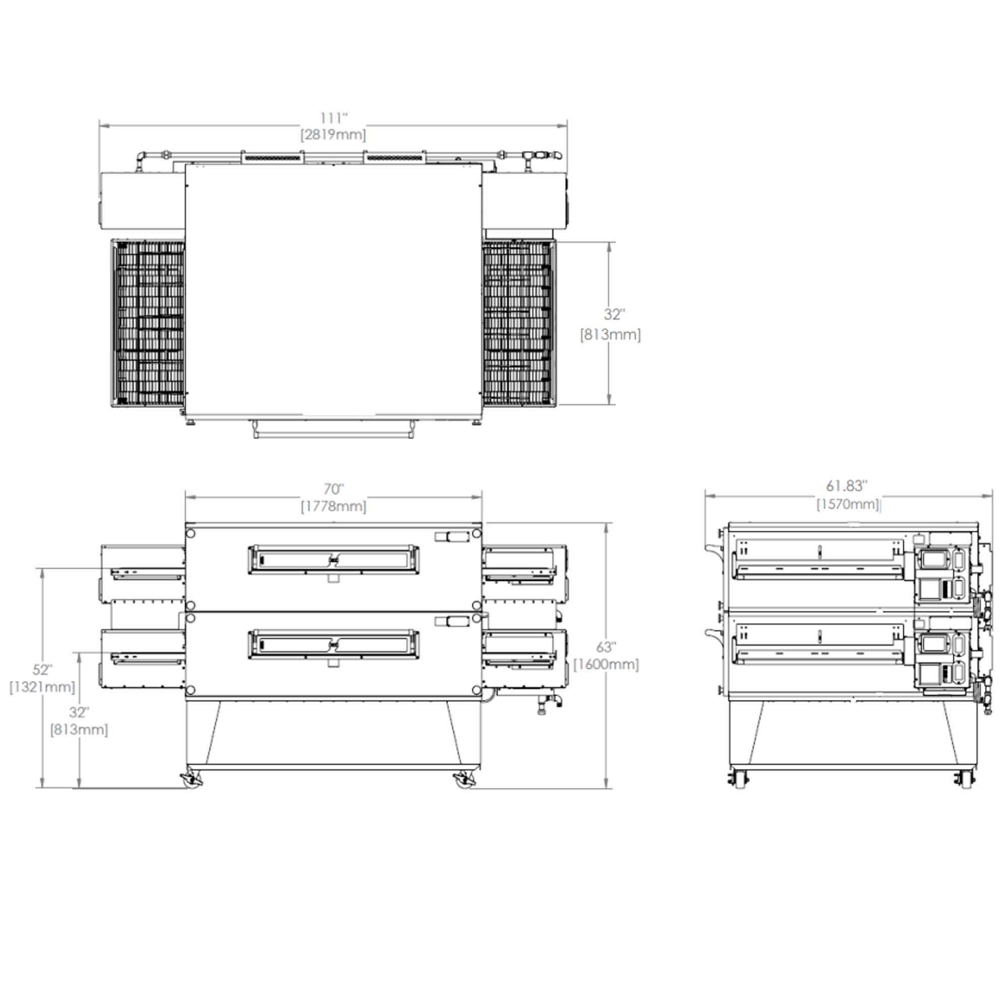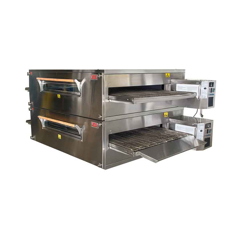 Le four convoyeur XLT 3270-2G au gaz est un modèle haute capacité destiné aux pizzerias, boulangeries et établissements de restauration à forte production. Grâce à son tapis large de 810 mm et sa configuration double, il assure un rendement exceptionnel, avec une cuisson rapide, homogène et régulière grâce à la technologie d’air pulsé « impingement ».