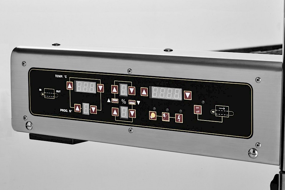 • Il est possible de programmer la cuisson par un panneau de contrôle électronique digital en en réglant la température et le temps d’après la vitesse de la bande transporteuse