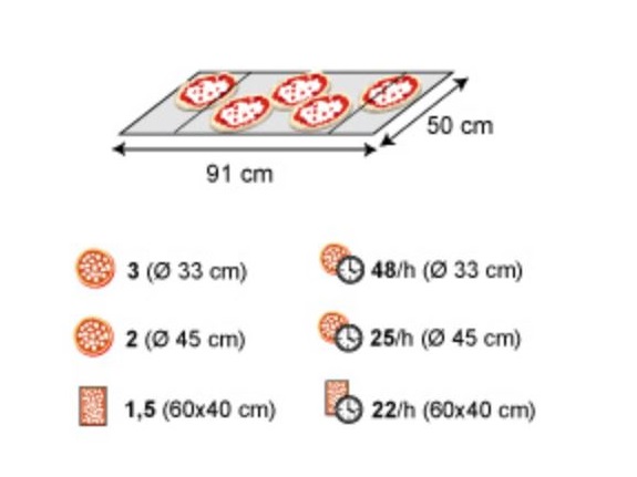 | Capacite | 50 pizzas Ø 33 cm / 25 pizzas 45 cm |