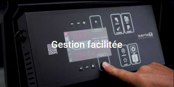 Grâce à la technologie ECO-STAND BY™, le four Moretti Forni TT98E-3 est conçu pour optimiser la consommation d'énergie sans compromettre la qualité de la cuisson. Il est également doté d'un écran couleur TFT de 5 pouces, avec une interface multilingue pour une utilisation intuitive et simple, quel que soit le niveau de compétence de l'opérateur. De plus, avec 100 programmes personnalisables, vous pouvez ajuster facilement les paramètres de cuisson en fonction de vos besoins spécifiques, garantissant des résultats parfaits à chaque fois.