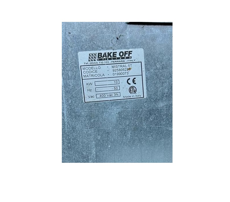 Offrez à votre cuisine professionnelle la polyvalence et la performance du Four à Convection Électrique 5 Plateaux Bake Off Mistral 5T d'occasion, le tout au meilleur prix. Conçu par la marque de renommée mondiale Bake OFF ITALIANA, ce modèle MISTRAL 5T, doté du numéro de série 925805220, est équipé de 5 plaques de 40x60 et 46x66 cm pour répondre à tous vos besoins de cuisson. Ses dimensions extérieures compactes, mesurant 800 L x 1150 P x 670 H mm, en font un choix optimal pour les cuisines professionnelles. Avec une distance de 90 mm entre les plaques, une puissance de 10 kW et une alimentation en TRI/230V/50Hz, ce four offre une performance exceptionnelle à un prix avantageux. Faites l'acquisition de cet équipement de qualité pour sublimer vos créations culinaires