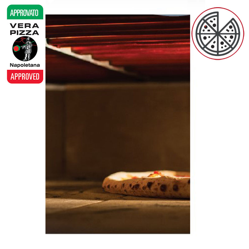 Capacité de Pizza : 1 pizza Ø cm 33, répondant aux normes strictes de la Vera Pizza Napoletana.