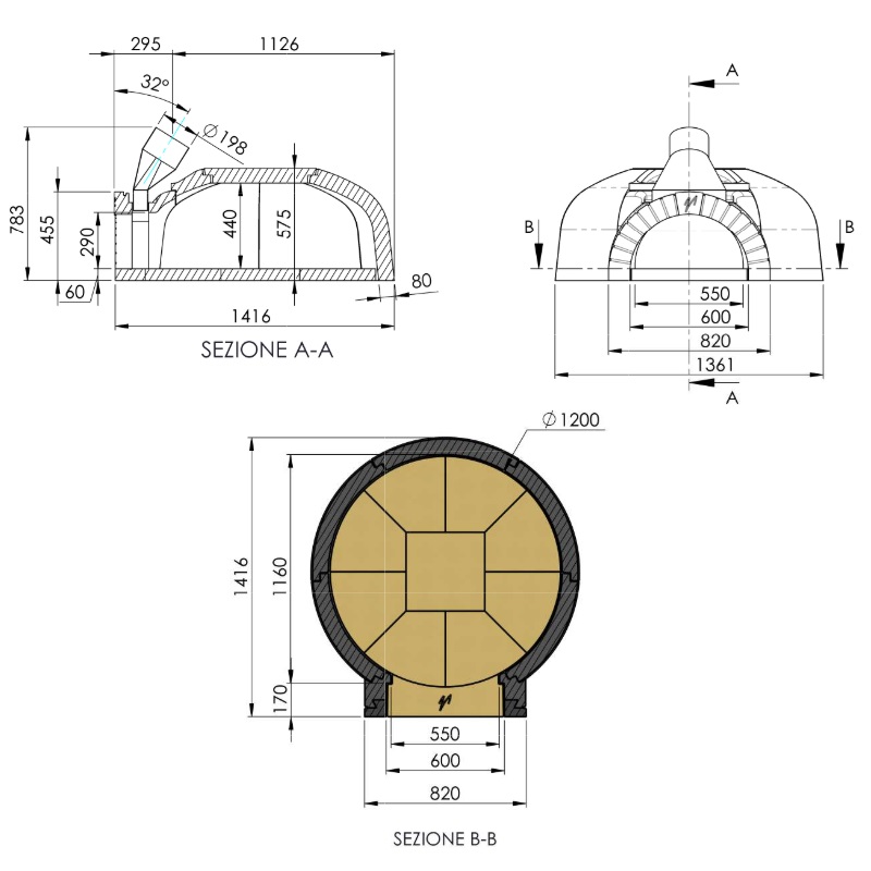 Le four en kit Napoli Forni Vesuvio offre une solution polyvalente pour une cuisine de qualité professionnelle, que vous préfériez le bois ou le gaz. Avec des dimensions internes de 1200x1200 mm, il peut accueillir jusqu'à 6 pizzas de 28 ou 30 cm de diamètre, répondant ainsi à tous vos besoins de cuisson.