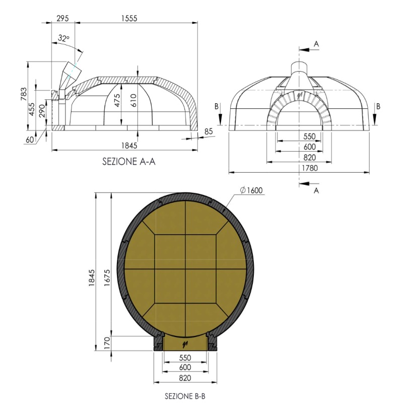 Avec des dimensions internes généreuses de 1600x1600 mm, ce four peut accueillir jusqu'à 15 pizzas de 28/30 cm de diamètre, offrant ainsi une capacité de cuisson étendue pour les établissements à forte affluence ou les événements.