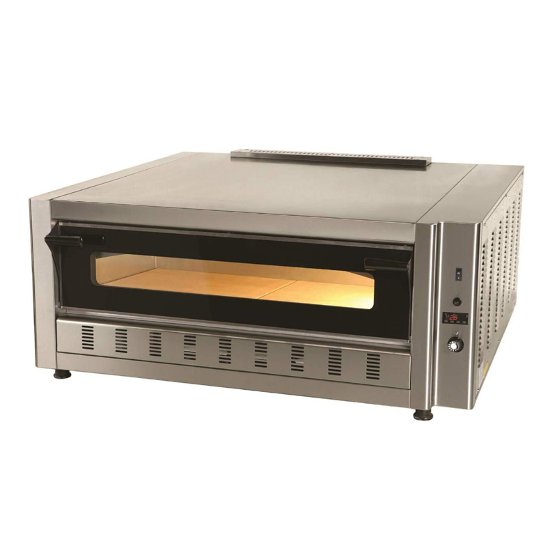 Les fours pour pizzeria avec de grandes exigences. Les principales caractéristiques sont l'économie, la sécurité et des performances stables. Merci à la conception spéciale des murs ont la capacité d'élever la température à 340 ° C en un temps très court et de la maintenir constante. La température de consigne devient un commutateur de gaz à haute sécurité avec thermostat et contrôlée par un thermomètre numérique. Le four de cuisson du type porte avec une façade en verre Pyrex pour l' insertion et l' extraction facile des produits, et la surveillance directe de la chambre intérieure.