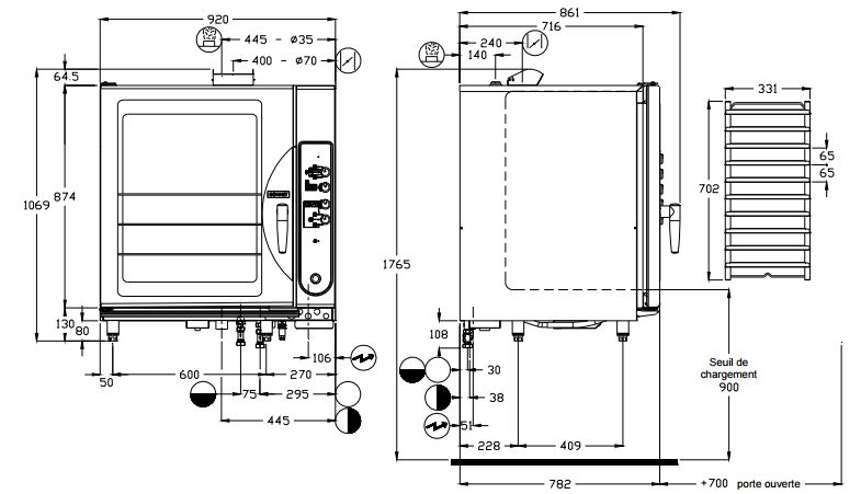 - Hauteur four + piètement: 1765mm